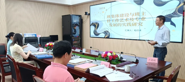 首先,三位课题负责人分别进行课题结题汇报。参加结题的三个课题分别是毛行术老师主持的课题《班集体建设与班主任工作艺术及专业发展的实践研究》,夏忠春老师主持的课题《装配式建筑绿色建筑校企合作人才培养策略研究》,詹代发老师主持的课题《提升中职学校美术专业学业水平考试能力的教学策略研究》。三项课题自2022年6月立项以来,已经进行了两年的课题研究工作。