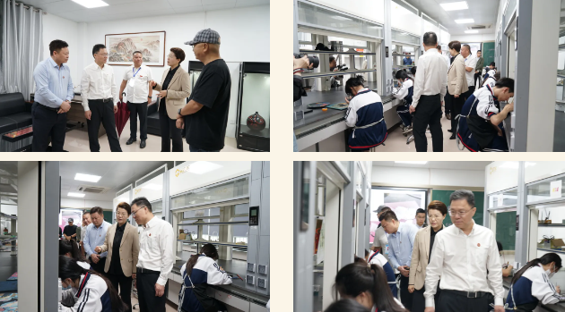 调研组观看闽清职专学校宣传片,参观非遗专业漆艺实训室,听取闽清职专在校企合作、产教融合、中高职对接办学、专业设置、学生实习和就业、技术技能培训等方面工作汇报,对闽清职专近年来办学所取得成绩表示赞许。