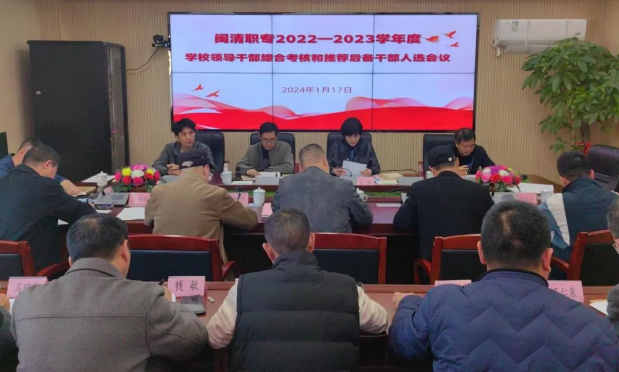 为进一步加强学校领导干部队伍建设,持续深化学校内部管理体制改革,推动治理体系和治理能力现代化,2024年1月17日下午,闽清县教育系统学校领导干部综合考核组一行4人在李峰副局长带领下,到闽清职专开展2022-2023学年度学校领导干部综合考核和推荐后备干部人推荐工作,闽清职专党支部书记、校长陈友水及全体行政人员参加。