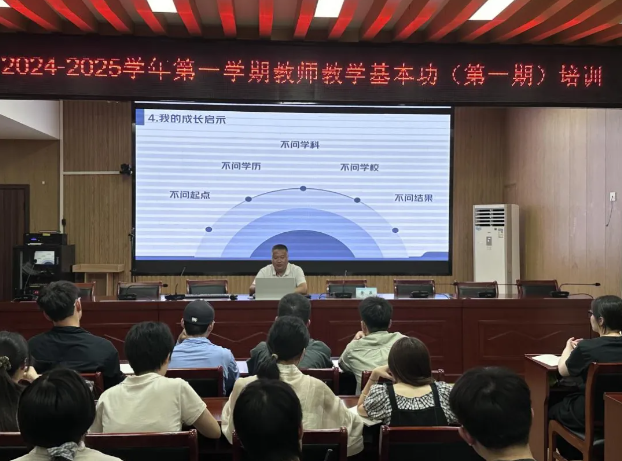在讲述“教师基本素养”时,他强调了教师应具备的素养涵盖职业道德、知识、能力和身心素质。他特别强调了知识素养和能力素养的重要性,并鼓励新教师在未来的教学工作中持续磨练,以提高自身的专业技能。