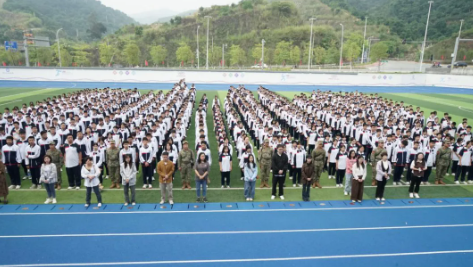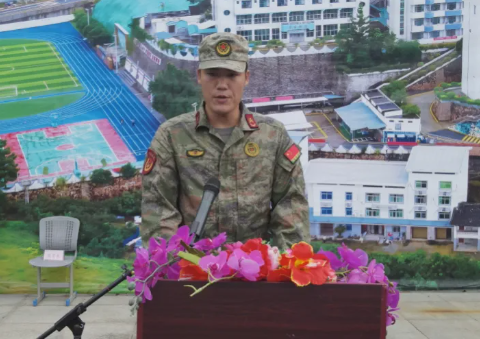 训少年之体魄,强中华之脊梁。杨矩强副书记为开营仪式致辞,他首先代表向承担施训任务的教官们表示热烈的欢迎和衷心的感谢,并对全体2024级新生提出几点要求:一、要端正态度,明确军训目的;二、刻苦训练,学习军人作风;三、严格训练,严格要求;四、凝聚集体,争当模范;五、遵守纪律,注意安全。他希望每位参训学生都能擦去泪水,挥洒汗水,迈开坚定步伐,挺起高耸脊梁,在训练场上展现青春风采,让今天播下的希望种子,生根发芽、枝繁叶茂。