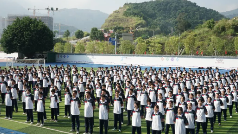 操场上,“一、二、三、四!”的口号声此起彼伏,同学们迈着坚定的步伐,认真摆动双臂。