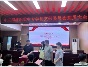 会上,党支部书记陈友水宣读《中共闽清县直教育系统委员会关于闽清职业中专学校等9个党支部补选委员候选人的批复》,副书记杨矩强宣读《中共闽清职业中专学校支部委员会选举办法(草案)》并介绍候选人预备人选基本情况。大会以举手表决的方式,审议通过了选举办法、监票人和计票人名单、补选委员候选人名单。