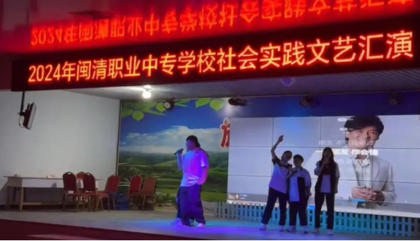 期间,在福清融港社会实践基地开展了一场文艺汇演,师生同台演出,教师倾情吟唱,学生尽情展现了表演才华,各种歌曲、舞蹈等表演让人目不暇接,整场晚会过程掌声不断,笑声不停,师生热情高涨。