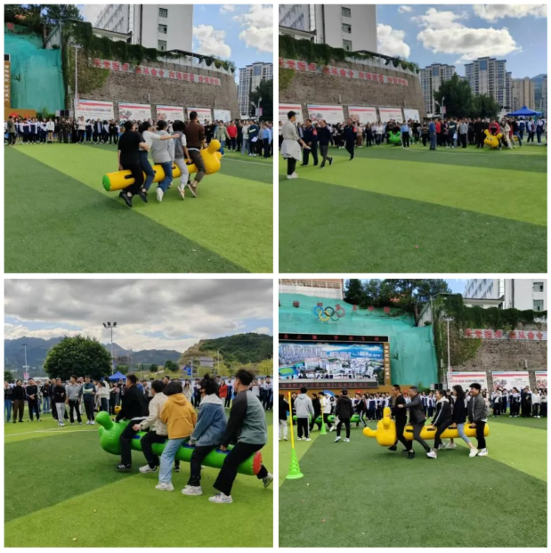 本次趣味运动会比赛项目,包括雷区取水、“毛毛虫”竞速赛、乒乓球往返接力等,教师们本着“友谊第一,比赛第二”的精神,在运动场上展开激烈角逐,大家互相鼓励,互相帮助,充分发扬了团结协作、奋勇争先的精神风貌,不断将运动会的气氛推向高潮。