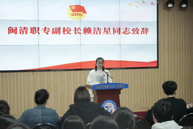 出席本次仪式的领导有闽清职专副校长赖洁星、闽清职专团委书记董甜蜜、闽清职专团委副书记范丽君、闽清职专团委副书记张三禹、闽清职专团委干事池政。仪式由23级实验班的汪钰莹同学主持。