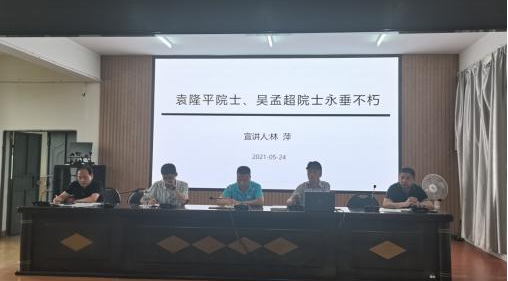 5月24日下午,我校党支部书记林萍同志结合党史学习教育的要求为全体教师上了一堂题为《袁隆平院士、吴孟超院士永垂不朽》的党课。林书记介绍了两院士的先进事迹和他们对祖国和人民作出的巨大贡献,并勉励全体老师要继承和发扬两院士无私奉献的精神,在追求真理的道路上,躬行实践,厚积薄发,勇担时代赋予的责任担当,为实现中华民族伟大复兴的中国梦努力奋斗。