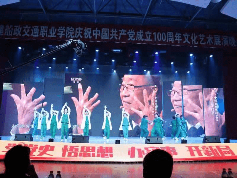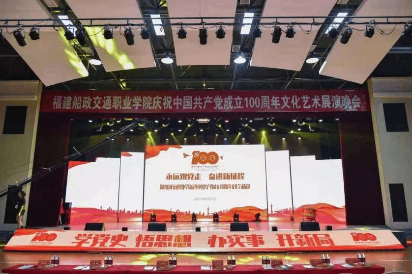 座谈会后闽清职业中专学校领导班子和福建船政交通职业学院领导、老师一起参看了“福建船政交通职业学院庆祝中国共产党成立100周年文化艺术展演晚会”,闽清职业中专学校派出20个学生两个项目参加此次演出:器乐联奏《听海》、《复兴》、《花之舞》,表演者:李俊炜、陈露、郑永坚等,指导老师吴燕;舞蹈《托起生命之手》,表演者:孙玉豪、谢钰煊、张梓琳等,指导老师吴景花。