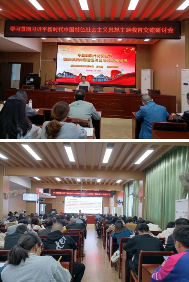 11月17日下午四时许,在全体教师殷切期待和热烈的掌声中,庄书记以《中国式现代化背景下职业学校内涵建设与发展的战略思考》为题讲授专题党课。他以习近平总书记关于教育、文化、意识形态等重要论述为切入点,围绕中国式现代化背景下职业教育发展内涵与理论、内涵建设与发展的思考,全面阐述了学校教育内涵发展是“以人为本”的发展,育人的根本在于立德。明确了学校走内涵发展道路是现代化、国际化和数字化发展的必然要求,也是实现可持续发展的必然选择,回答了“内涵建设是什么、怎么做”这个职业教育发展中的关键问题。庄书记凭借扎实的理论功底和深厚的学识修养,以高瞻的站位、宽阔的视野和深刻的思考,对中国式现代化的深刻内涵和职业教育的发展战略娓娓道来,通过深入浅出、引经据典、风趣幽默的知识穿插和生动鲜活案例,让新思想“飞入寻常百姓家”,浸润人心,激发大家情感上的共鸣。整场报告既高屋建瓴,又见微知著。课后老师们纷纷表示接受一次深刻的党性教育和心灵洗礼,学有所悟、学有所获,思想得到升华。