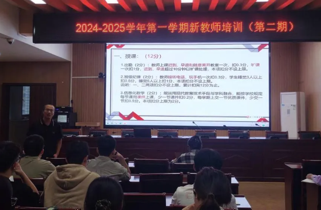 首先,夏忠春老师围绕教学常规,向新教师们详细讲解了教学常规的重要性和具体要求,从出勤、班级纪律、信息化教学、课堂评价、教师教育教学能力竞赛、教学质量评价等方面,每一环节都进行了细致入微的讲解,为新教师们规范教学行为、优化教学策略提供了有力支撑。完善课堂教学常规,有助于提高教育教学质量;规范教学行为,能促进学生德智体美劳全面发展和身心健康发展。