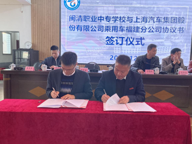 为了促进校企合作,加快专业发展,推动校企一体化,闽清职专和上海汽车集团股份有限公司乘用车福建分公司进行了深度合作,校企联合共建“上汽”冠名班,开展实质性合作,形成优势互补,互利共赢,共同发展的新格局。2020年12月29日下午,在闽清职专综合楼五层会议室隆重举行校企合作签约、授牌和冠名班开班仪式。
