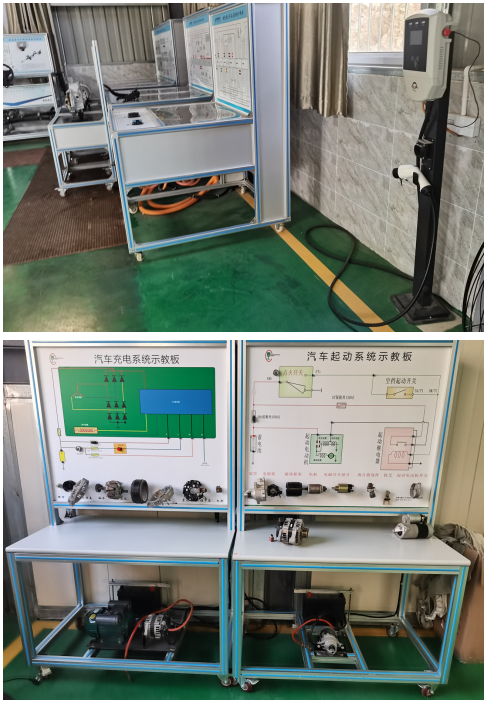我校拥有完整的汽车技术实训室与新能源汽车实训室两大实训中心。新能源汽车实训中心占地380m2,投资97万元。共有设备197件(套)。 本专业校内实训室以实施生产性实训教学为目标,参照汽车售后服务企业工作场所的模式来进行规划设计,保持设备、仪器、工具的更新换代,为学生提供具有高仿真的企业工作环境与场所,并能实现教学做一体化教学的要求。