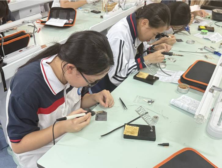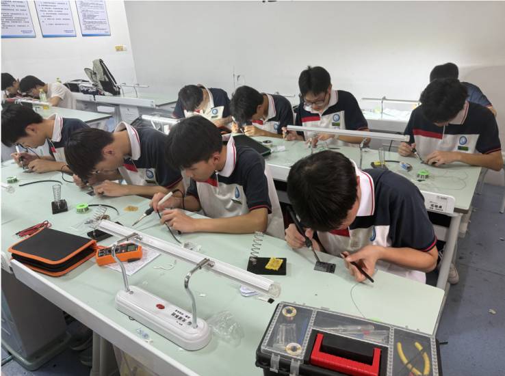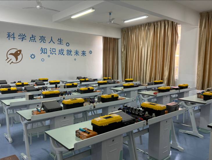 本专业拥有电子基础实训室、PLC实训室、音视频实训室、电工实训室、电气实训室(光伏)、智能家居实训室、制冷设备实训室,总价值130多万,还拥有面积400多平方米的先进电子智能制造产教融合基地。