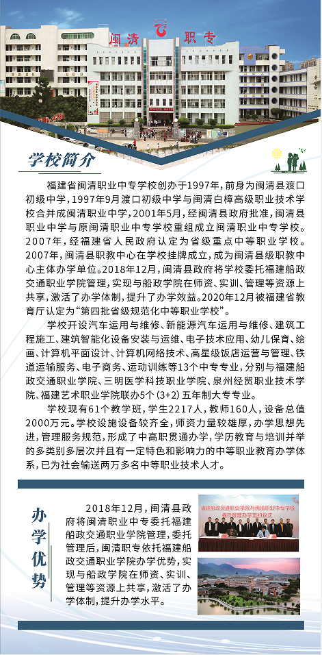 【匠心教育】福建省闽清职业中专学校2024年招生简章