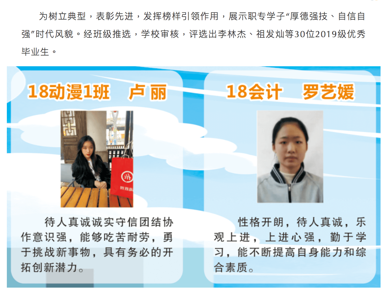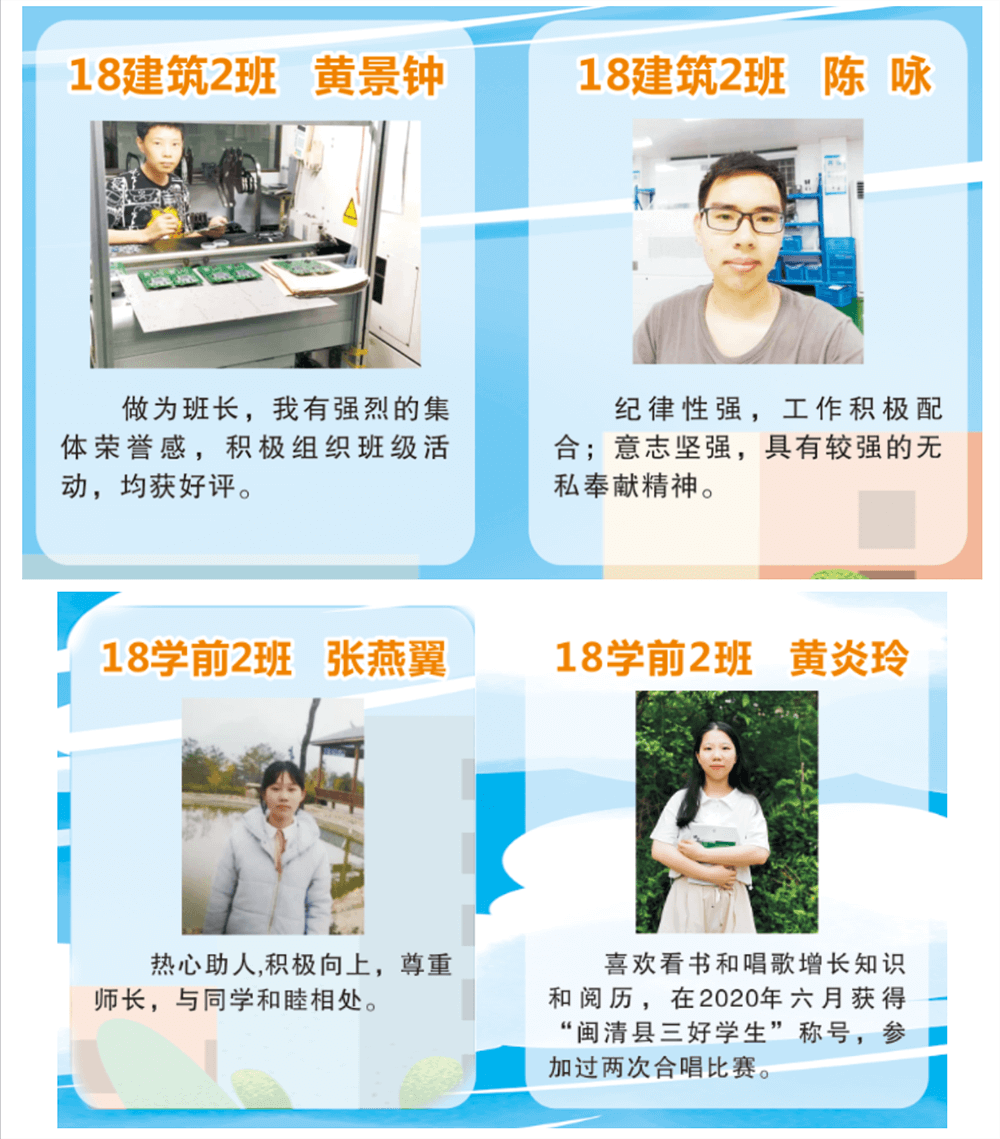 激励先进 树立榜样 传递正能量 ----闽清职专2019级优秀毕业生
