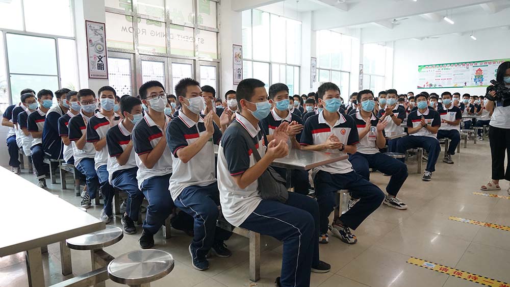 陈友水校长代表学校向留校学生表示真诚的关心和节日的问候,对他们能在团聚的日子里响应疫情防控号召留在学校过中秋表示高度赞赏。希望同学们众志成城,共抗疫情,安心学习,争创佳绩,并向远方异地的亲人报送平安,送去节日问候和祝福。陈校长温情的话语、亲切的问候深深感动了在场的每一位同学。许多同学眼含热泪、激动不已,不时发出“好”、“我们行”的呐喊。陈校长的发言常常被经久不息的掌声所淹没。