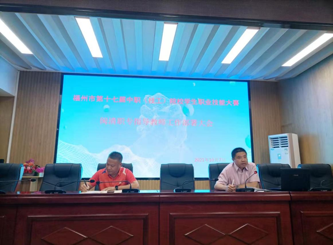 为积极备战福州市第十七届中职(技工)院校学生职业技能大赛,提升竞赛培训质量,我校于10月7日下午在校五楼会议室召开各专业部主任、教研组长及指导教师参加的部署大会,会议由许德钢副校长主持。