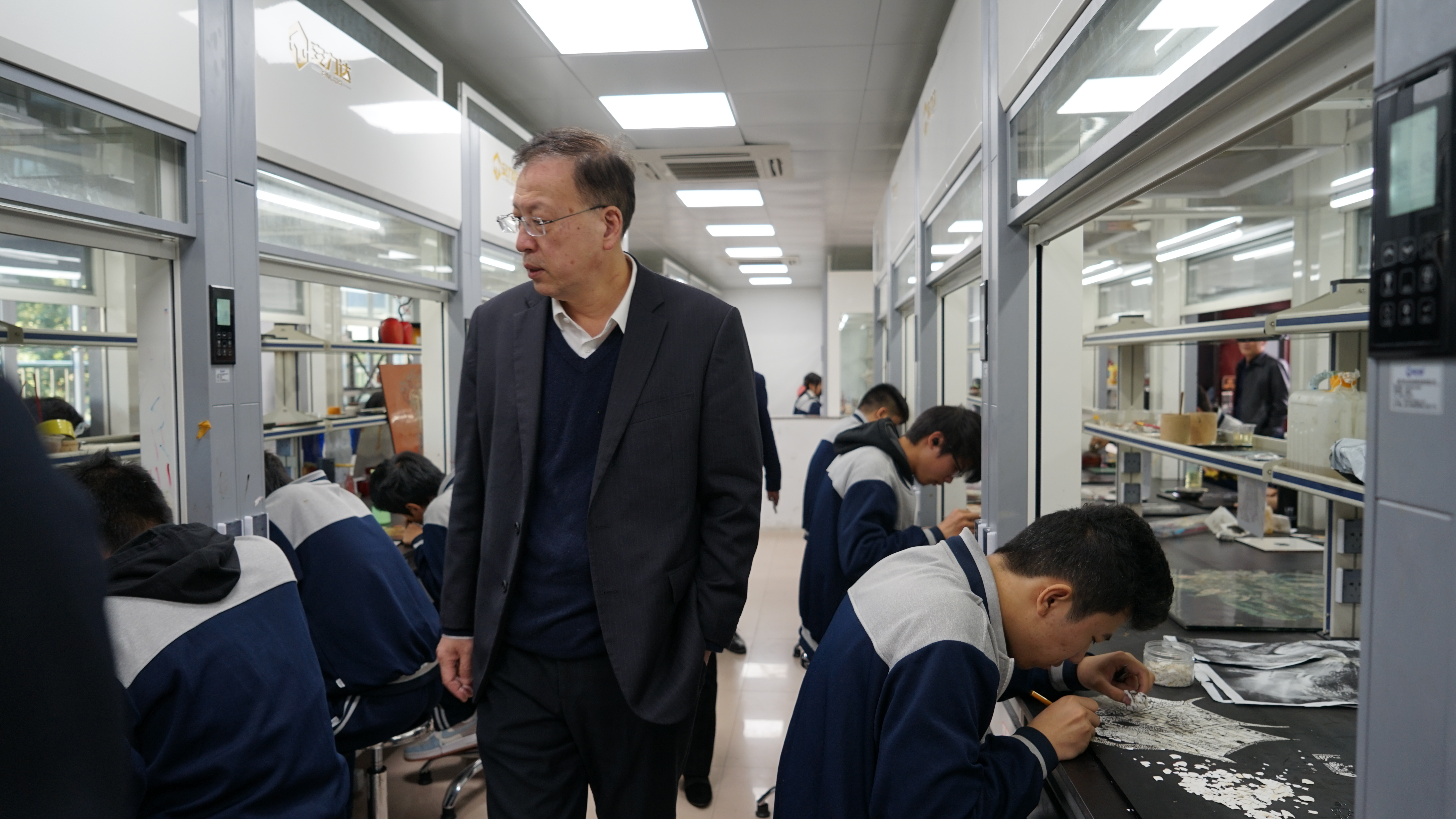 2021年12月2日下午,福建省教育厅副厅长刘健(正厅级)率领教育厅职成处处长罗强、福州市教育局四级调研员肖祥艳、福州市教育局职成处处长翁云峰一行4人莅临闽清职专调研指导。刘健副厅长一行在福建船政交通职业学院(以下简称船政交通学院)院长陈锦辉、闽清县县委副书记林燕青、闽清县教育局局长刘强、副局长方儒钦、闽清职专校长陈友水、书记林萍陪同下参观了闽清职专校园、实训基地、校内企业、漆画大师工作室等。刘健副厅长详细询问了学校现代学徒制实施,校企合作,引企入校等具体情况。