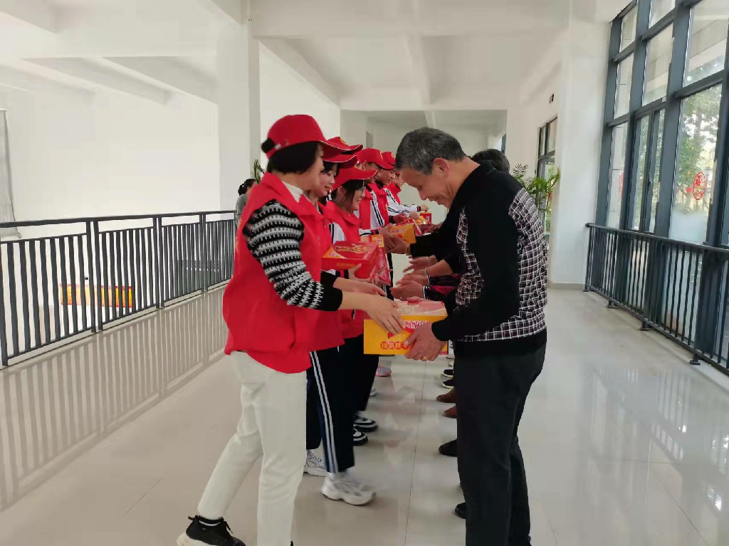 农历正月二十九是福州特有的民间传统节日——拗九节,又称“孝顺节”。为传承孝文化,弘扬中华传统美德,营造敬老爱亲的良好氛围,践行社会主义核心价值观,2022年3月1日下午闽清职专学生志愿者在德育处吴仁泉主任、张小雯主任与校团委赖洁星书记的带领下,走进校党支部共建单位蓝波湾小区开展拗九节爱老助老活动。为社区老人送去祝福与关爱。