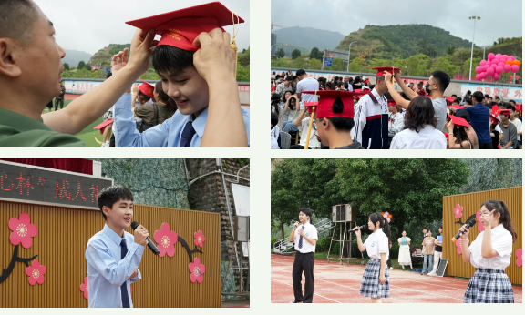 随着仪式的进行,同学们佩戴上了象征成熟的成人帽,肩负起家庭、社会、国家的重任。随后,一首《我的未来式》展示了新时代青年昂扬进取的精神面貌。