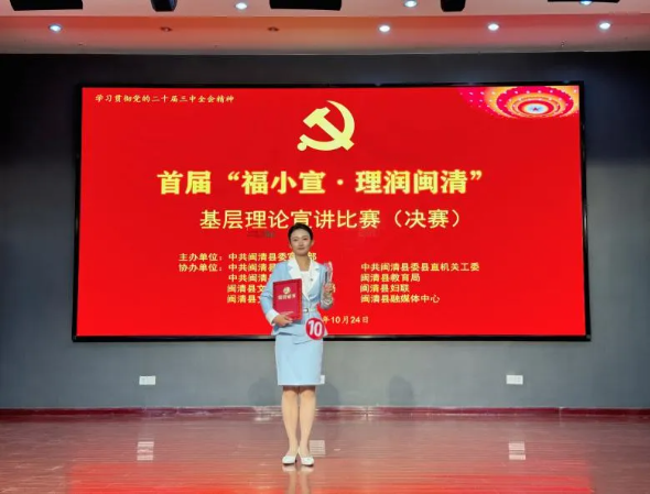 为深入学习贯彻习近平新时代中国特色社会主义思想和党的二十届三中全会精神,推动党的创新理论“飞入寻常百姓家”,9月13日,由中共闽清县委宣传部主办的2024年闽清县首届“福小宣·理润闽清”基层理论宣讲比赛(预赛)在闽清县新时代文明实践中心宣讲厅顺利举行。来自全县各单位的22位参赛选手同场竞技,从日常工作、亲身经历、身边榜样等方面,讲述党的历史、党的理论、党的政策以及身边先进典型等内容。我校青年教师孙巍月参加了此次比赛,在严格的筛选中脱颖而出,成功入围决赛。