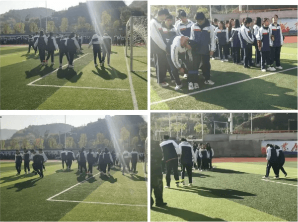 3.“二人三足”游戏里,学生相互配合,明白了1+1大于2,学会了在艰难险境中借力,还增强了责任感与执行力,收获满满。