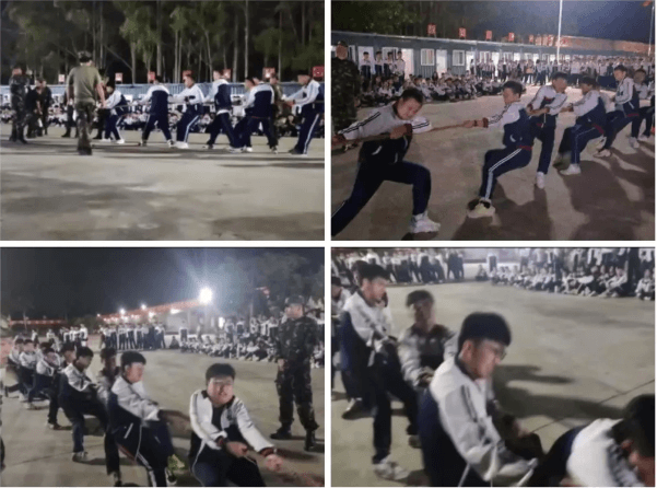 1.“动力圈绳”游戏中,学生激情澎湃,斗志昂扬。通过活动开发了团队潜能,提升团队凝聚力,锻造学生钢铁意志。