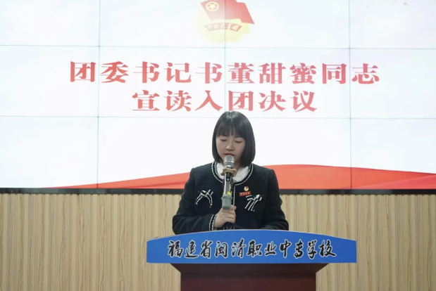 随后,闽清职专副校长赖洁星对新团员表示了祝贺,并希望他们能够坚定理想信念,努力学习,积极参与社会实践,为实现中华民族伟大复兴的中国梦贡献自己的力量。