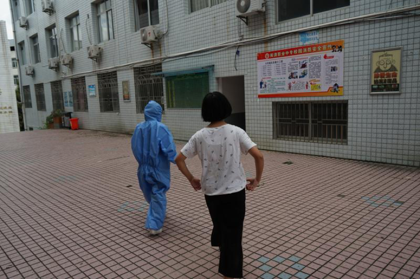 场景5:一个小时后,班主任黄燕老师主动联系家长询问情况。如是普通发热症状,让孩子在家休养,退烧后还要在家里观察48小时,完全康复(取得复课医学证明)方可上学。如是疑似新冠肺炎病例,班主任立即汇报疫情应急领导小组,由校长第一时间向教育局分管领导汇报、校医第一时间向梅溪镇卫生院疾控中心汇报。