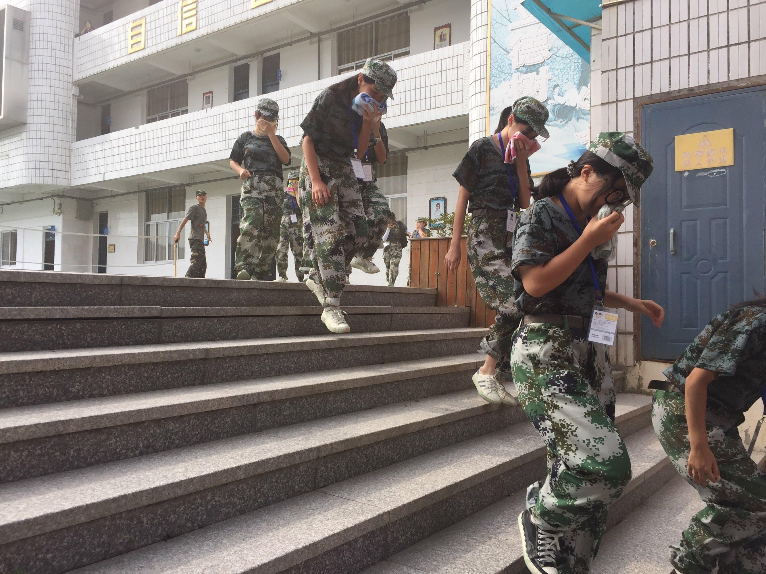 随着火势加大,浓烟弥漫扩散,各班同学在老师的指引用湿毛巾捂住口鼻,弯腰快速有序地按预先设定的路线疏散,为避免发生拥堵踩踏事件发生,各个通道都配备专人予以疏通