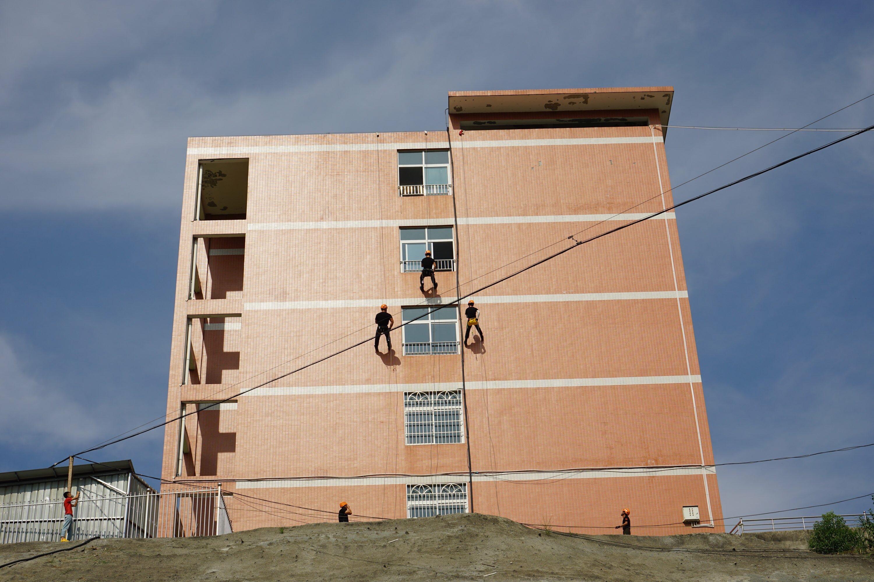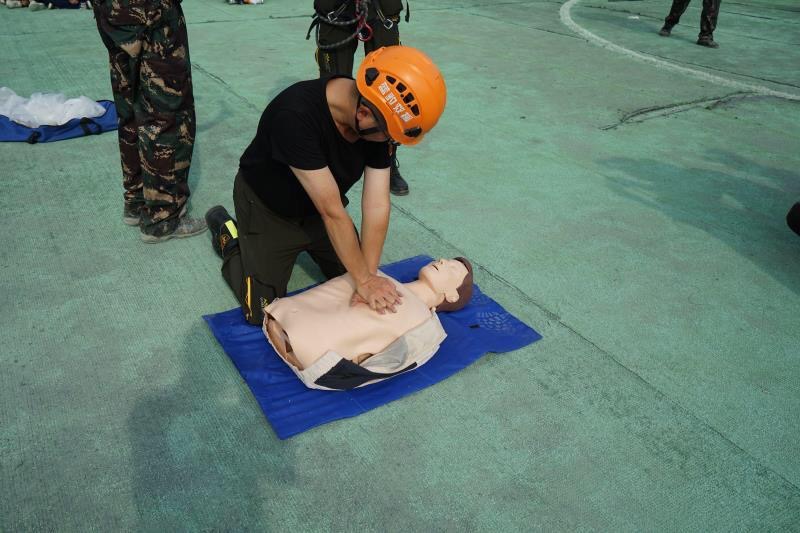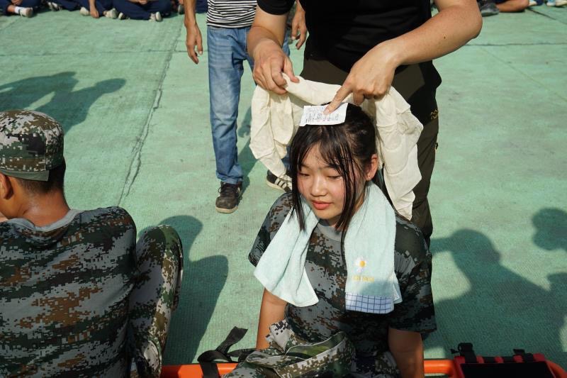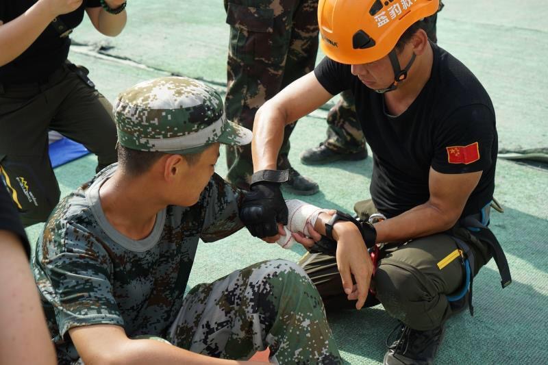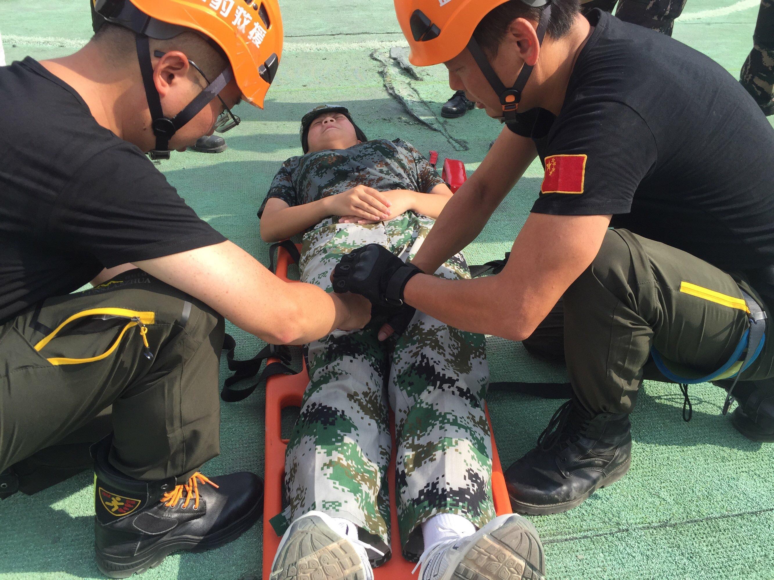 演练的目的是让学生掌握一些基本的急救自救,为此救援人员从如何用担架抬伤员到如何包扎不同部位的伤口都做了专业的示范