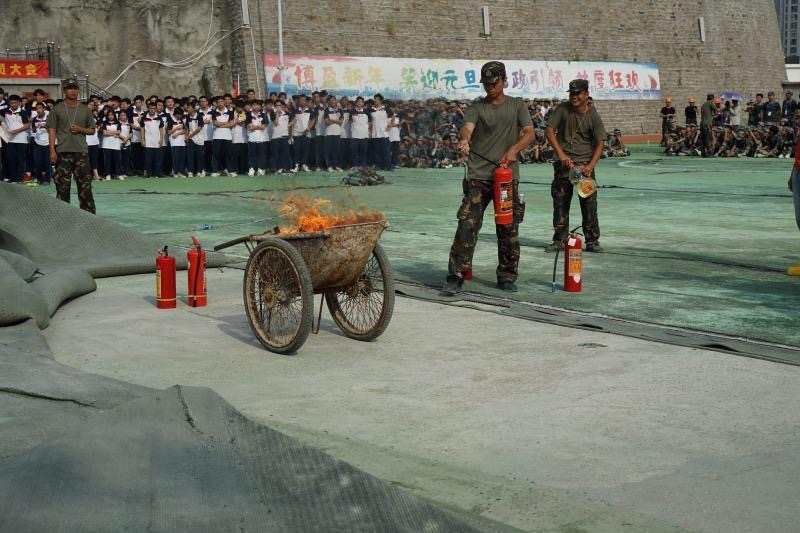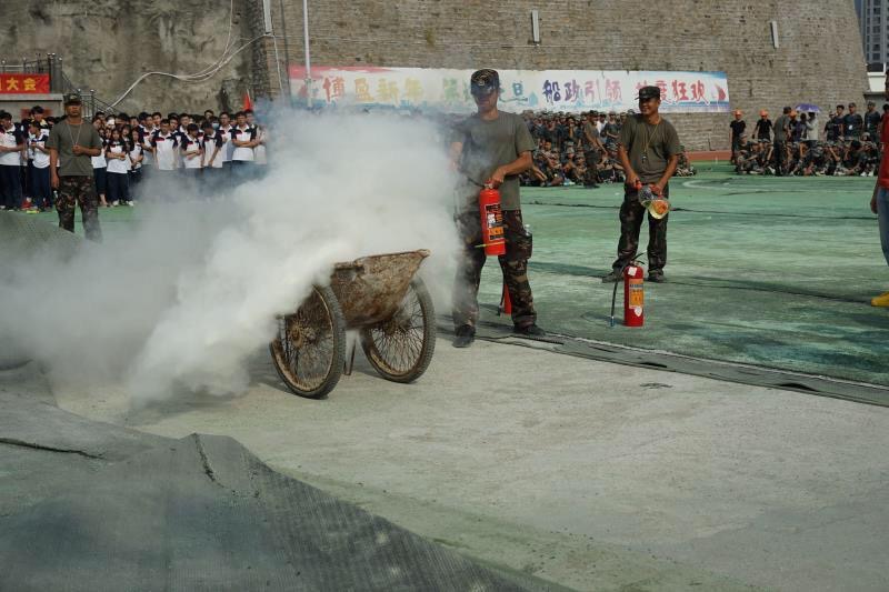 为了让学生学会正确使用灭火器,消防官兵对灭火器的构造及使用方法进行了详细的讲解并当场示范,尔后让学生亲身体验,掌握方法以便在火灾刚发生时能沉着冷静的进步灭火。
