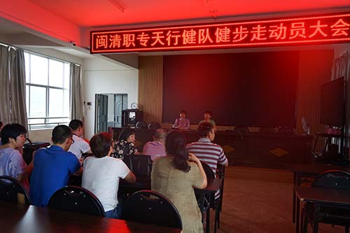 9月24日下午,闽清职专万步有约天行健队在学校五层会议室举行全国第五届“万步有约”健走激励大赛最后冲刺阶段的动员会议。会议由学校工会女工委主任林珠香主持。林珠香汇报总结了前一阶段健行队的成绩,反馈了存在健行数据没有及时上传和有些队员每天没有全部完成三个处方的问题。并对最后冲刺阶段的工作提出要求:所有队员要凝心聚力,坚持不懈,争取为学校取得好成绩,务必要及时上传健行数据。