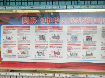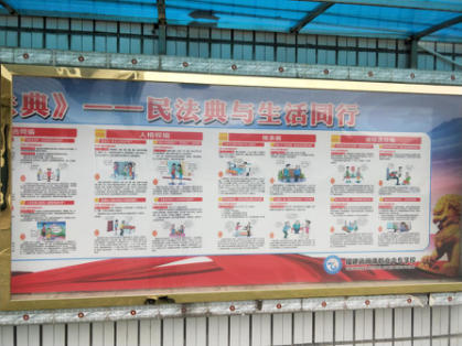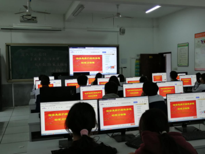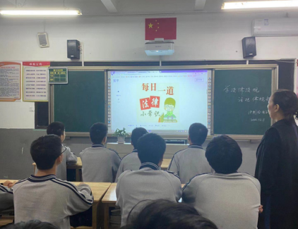 利用LED电子屏滚动播放“弘扬宪法精神,厚植爱国主义情怀”的宣传标语,利用校园潮声广播站、宣传栏等多种形式向学生宣传法治知识,营造校园氛围。