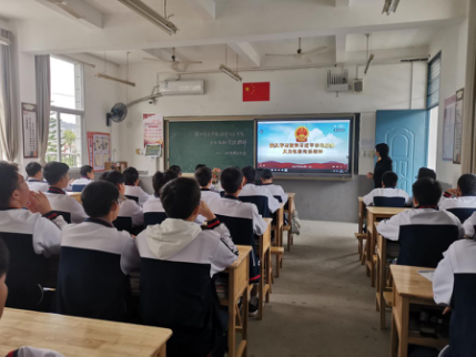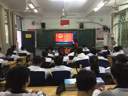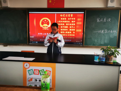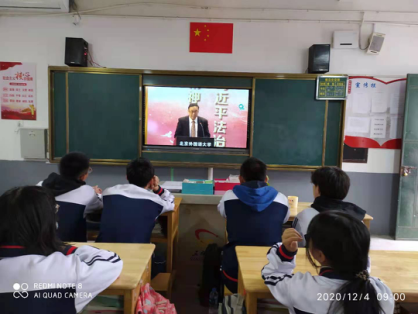 12月4日上午9点通过“教育部全国青少年普法网”网络视频同步直播的方式组织全校学生观看宪法晨读直播,参与升旗与宪法诵读。各班同学在教师的带领下,一起进行《宪法》节选内容的晨读活动。校园内书声琅琅,学宪法讲宪法的种子已悄然种下。