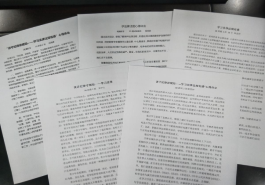 结合福州市书香校园读书活动,围绕“六读六话”之“读法律法规,话纪律规矩”活动,组织各班利用课外时间自觉学习《宪法》《网络安全法》《民法典》等法律法规,完成学习心得体会,并从本位出发谈守纪律、讲规矩,让法治精神、纪律意义深入学生心中。