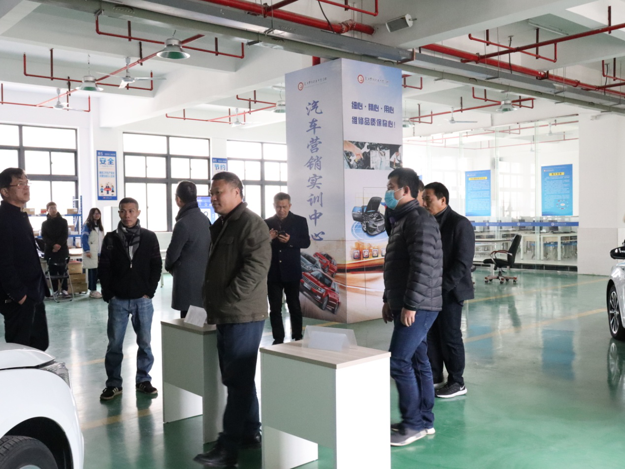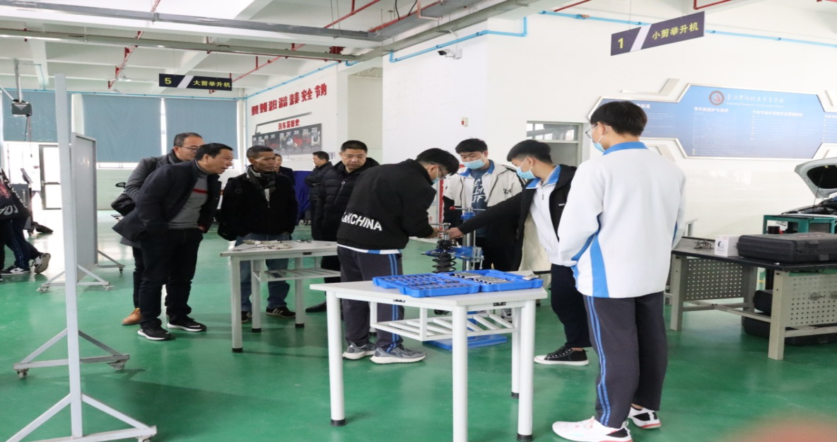 参观完鞋类展厅,我们来到了华侨职专办学最具特色的校企合作基地---汽车维修与营销中心,学生们一丝不苟、精益求精的态度阐释着“台上一分钟,台下十年功”这一名言。