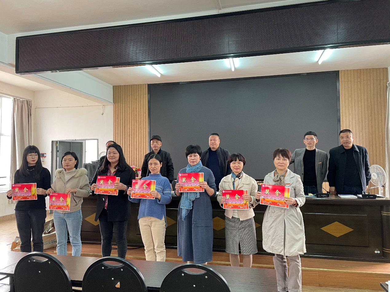 表彰会上,林萍书记为评为校“三八红旗手”的付美如、黄敬兰、林珠香、杨凤纹、郭晓玲、陈玉玲、高芳、陈铃殷八位教师颁发了奖状和奖金。并激励全校女教师们勇立学校改革发展的时代潮头,不忘初心筑新梦,不负芳华谱新章,在各自教学岗位上创新改革,立德树人,为我校教学发展贡献巾帼力量。
