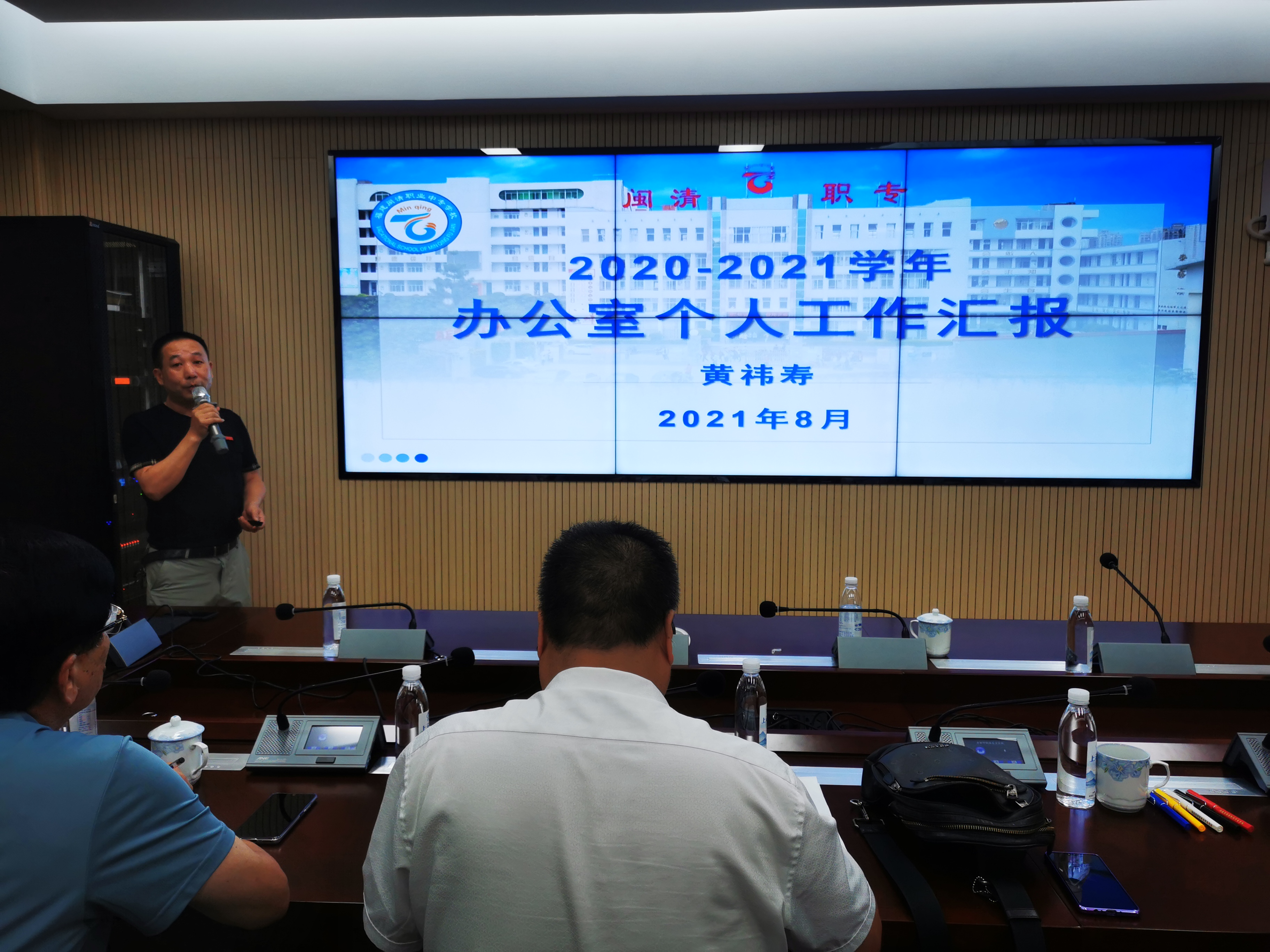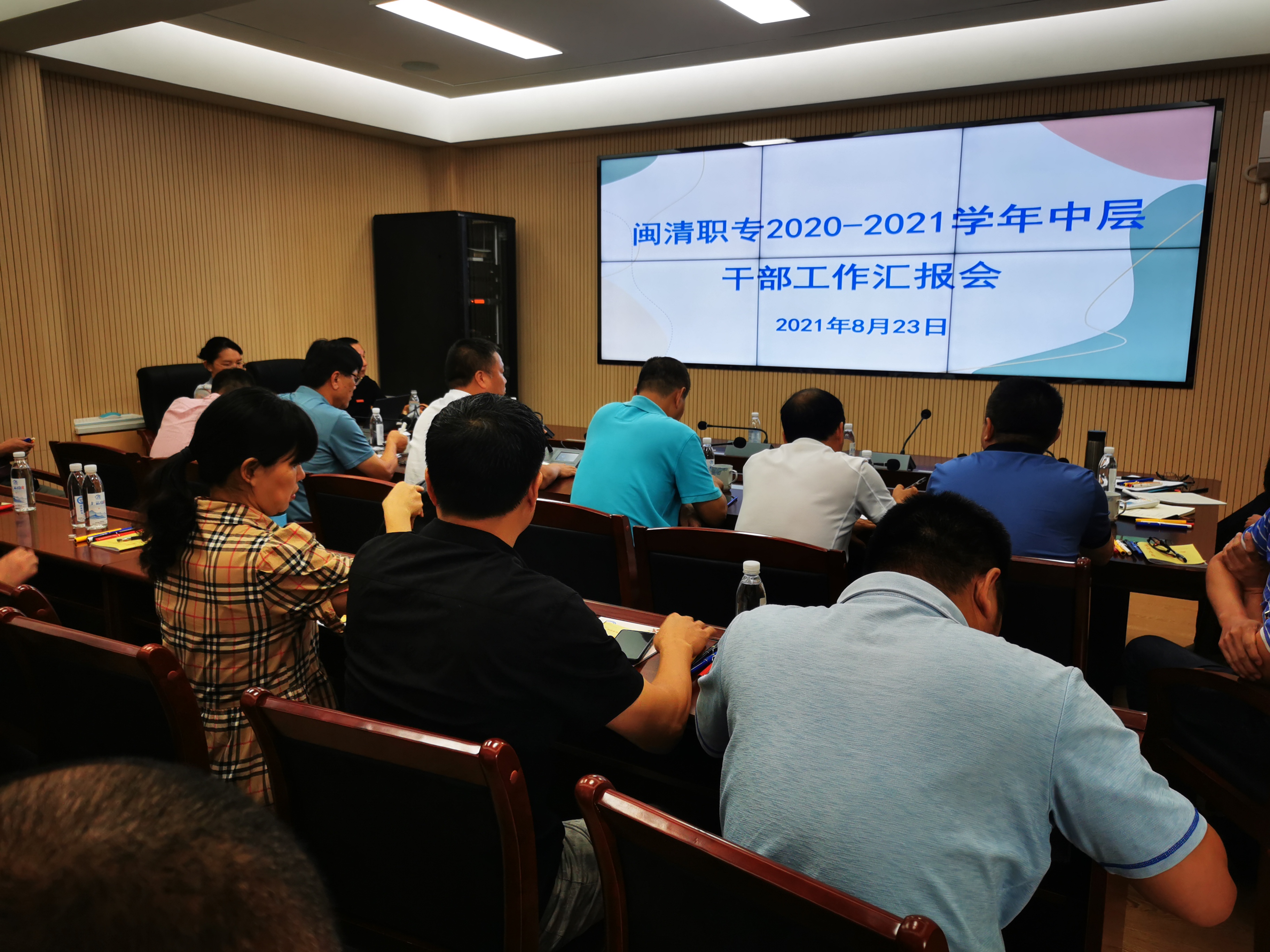2021年8月23日下午3:00分,闽清职专中层干部学年工作述职报告会在四层会议室举行。方儒钦副局长、陈华兵顾问和校级领导出席述职报告会,陈友水校长主持报告会。