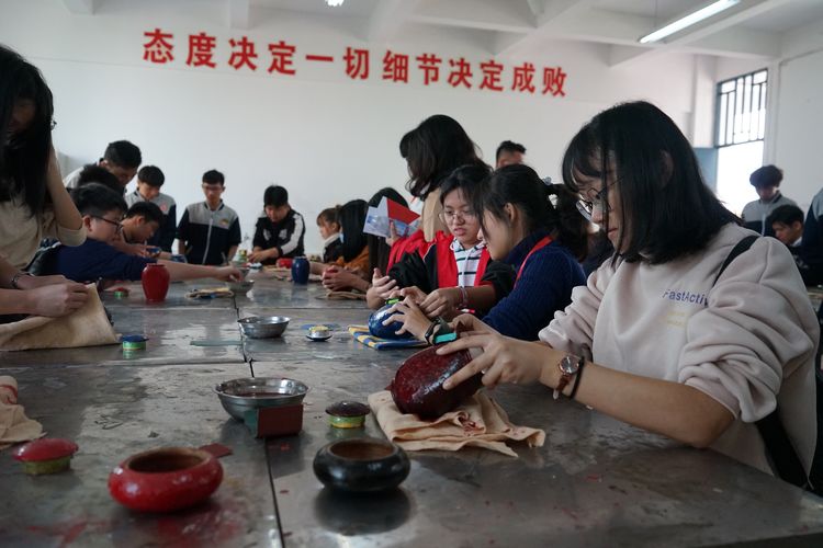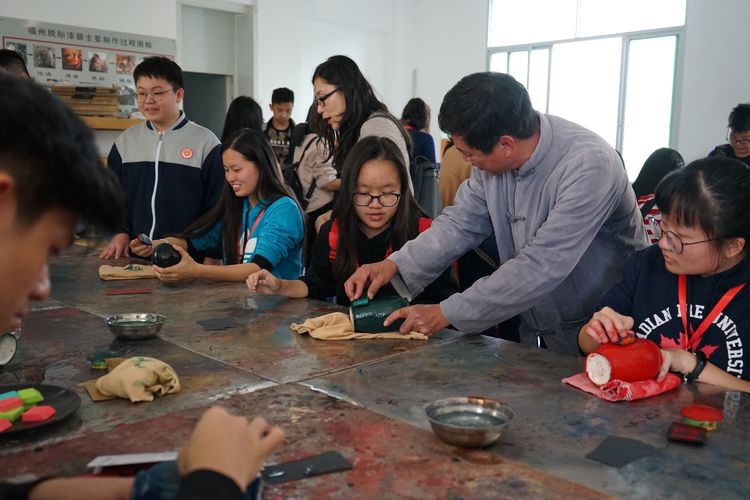 12月17日上午,福建省漆艺大师许德越给来自马来西亚的同学们讲解了大漆的由来、脱胎漆器的历史、脱胎漆器的制作过程等,让马来西亚的同学们感受到了中国非物质文化遗产的魅力,增进了同学们对家乡的感情。