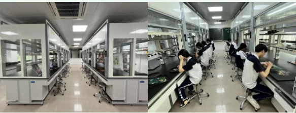 闽清职专美育基地拥有二间80平方米的漆画专业专用教室,教室功能齐全,设备先进;还建有拥有60个技能操作工位的漆画技能训练室,配备充足的教学、学生训练的漆画材料,为美育活动的开展提供了坚强的物质保障。