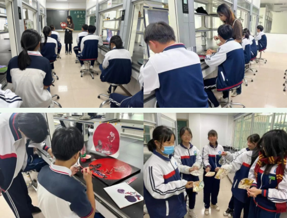 习近平总书记说,文化自信是一个国家、一个民族发展中最基本、最深沉、最持久的力量。向上向善的文化是一个国家一个民族休戚与共、血脉相连的重要纽带。传承非遗技艺,弘扬漆器文化,正是坚定文化自信的重要体现。美育基地成立以来,学校借助美育基地这一阵地,一直重视对学生进行中华文化自信方面的教育,通过开设专门讲座、设立非遗宣传栏等,营造浓厚的非遗文化氛围。