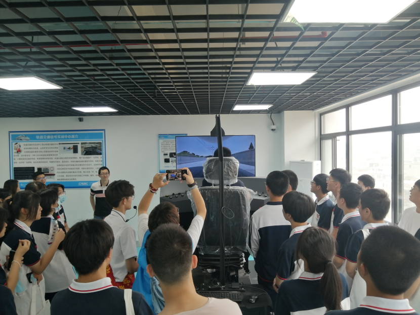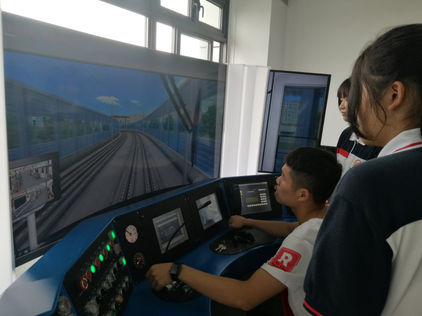 同学们参观轨道交通信号实训中心时,大家兴致勃勃地体验了从取票,安检,上下车、模拟驾驶等操作流程,通过虚实结合,人机互动的方式提供半实质仿真运行环境,真正实现“学、练、考”三大功能。