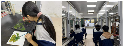 为适应职业教育改革发展新形势,学校建设漆艺实训教室与漆艺展厅,本专业与福州三宝漆艺研发公司签约实训基地,同时与欣享悦实业有限公司签约实训。
