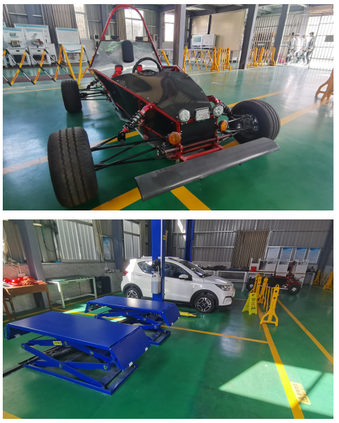 我校拥有完整的汽车技术实训室与新能源汽车实训室两大实训中心。新能源汽车实训中心占地380m2,投资97万元。共有设备197件(套)。 本专业校内实训室以实施生产性实训教学为目标,参照汽车售后服务企业工作场所的模式来进行规划设计,保持设备、仪器、工具的更新换代,为学生提供具有高仿真的企业工作环境与场所,并能实现教学做一体化教学的要求。
