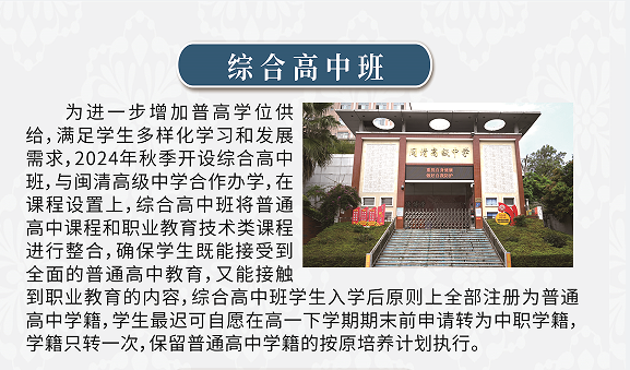 1.综合高中班入学后原则上全部注册为普通高中学籍。